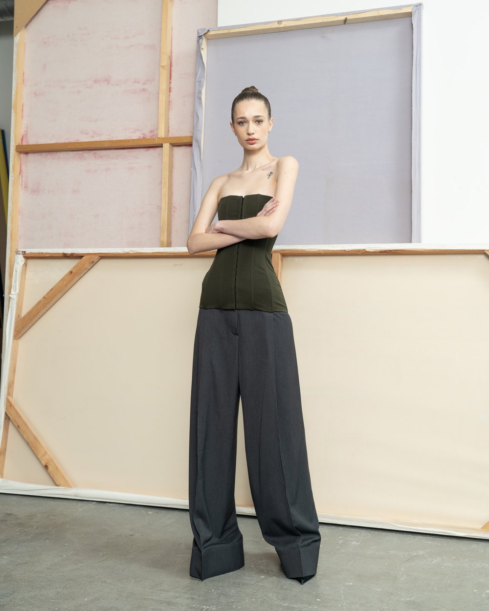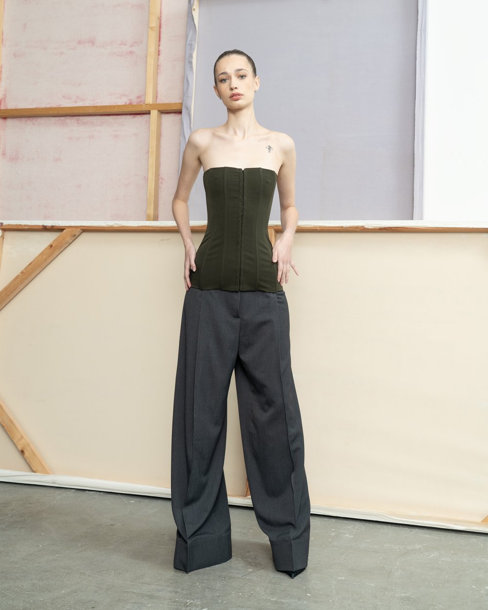 The collection is a pure and coherent authorial vision that has a high presentation and sales potential, the designation „pure“ is used quite deliberately, as these are explicitly women’s and men’s models. „A man should look like a man, and a woman like a woman. Of course, the blending and use of masculine and feminine elements as counterpoints or in details is not avoided, on the contrary. However, the archetypes materialized in the cuts and silhouettes are key for me and I stand by this concept.“ Without a shadow of a doubt, Lukas‘ show will be an alternative to the current asexual and fluid fashion trends.