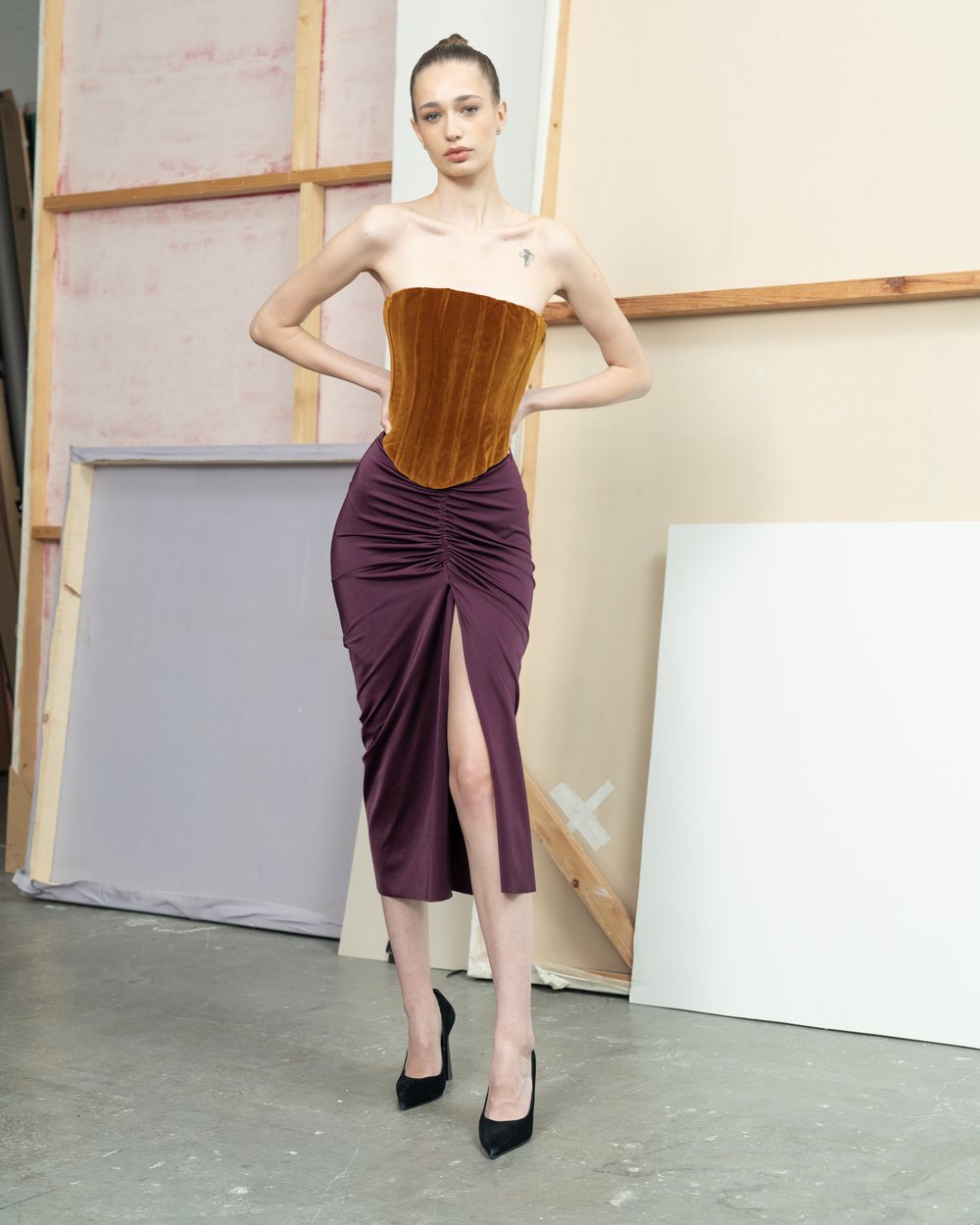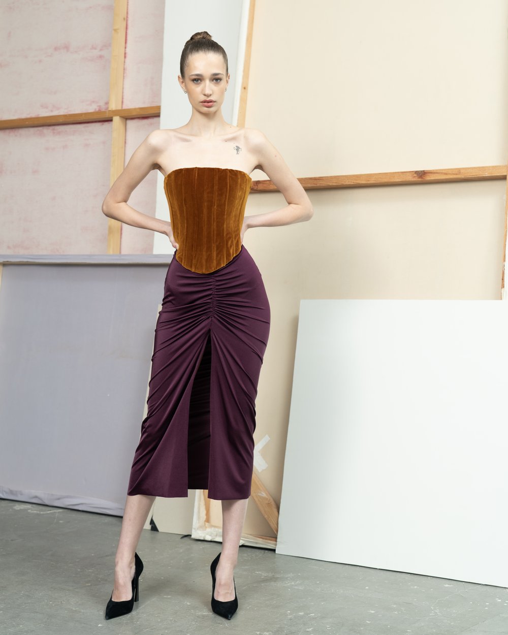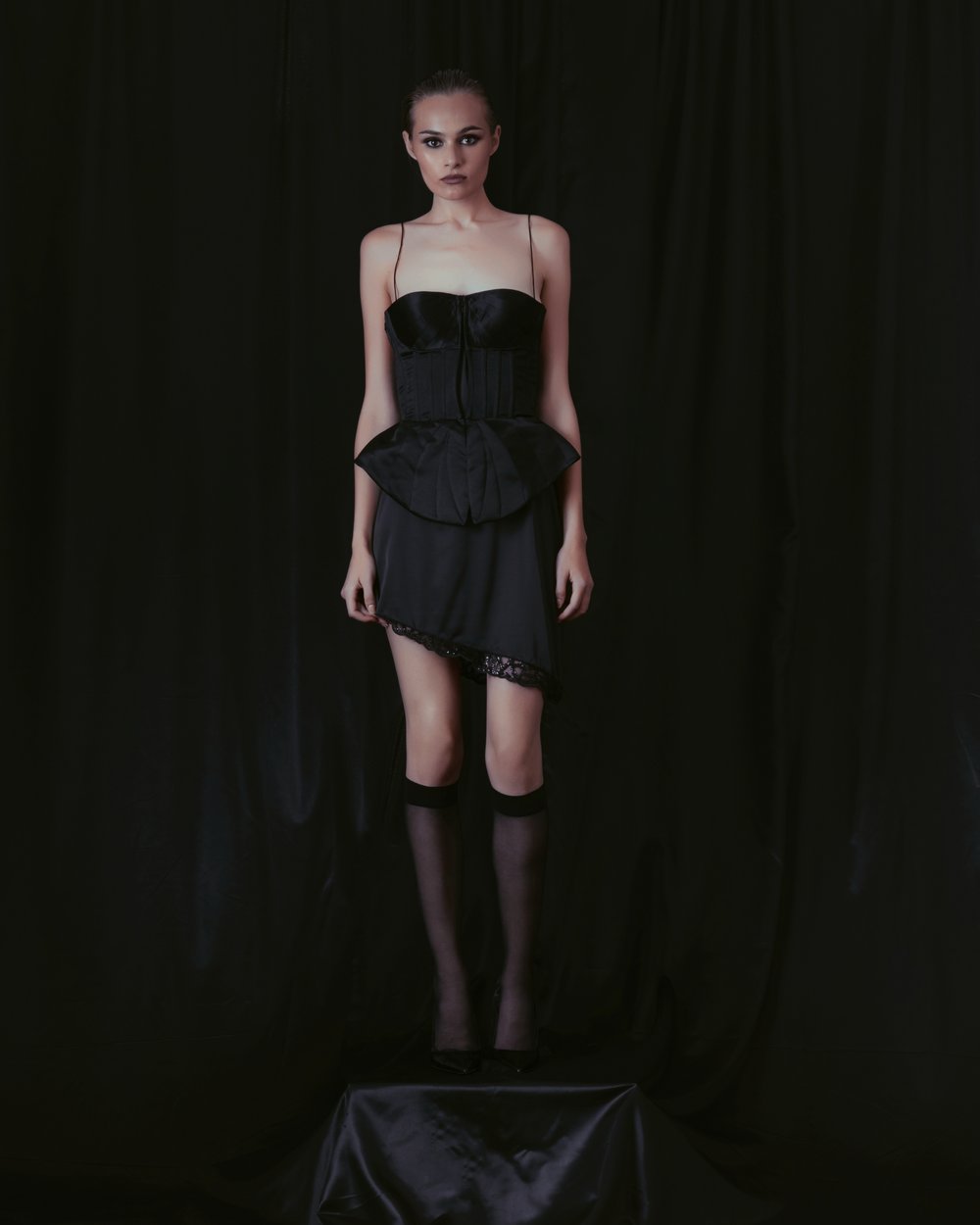 A collection in the spirit of party chic & purely feminine! Featuring designer favorites such as velvet, silk, satin and lycra in basic black. Some models can also be made in multiple color variants. The handwriting of the collection is carried in a glam rock style and is intended for parties or events that end until the morning and every woman will be a star in any situation!