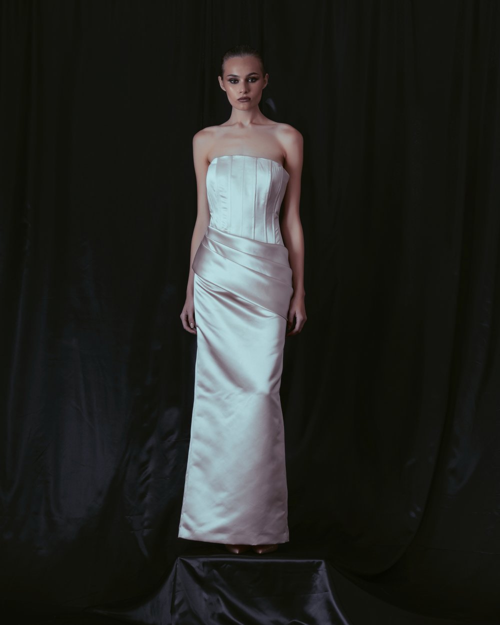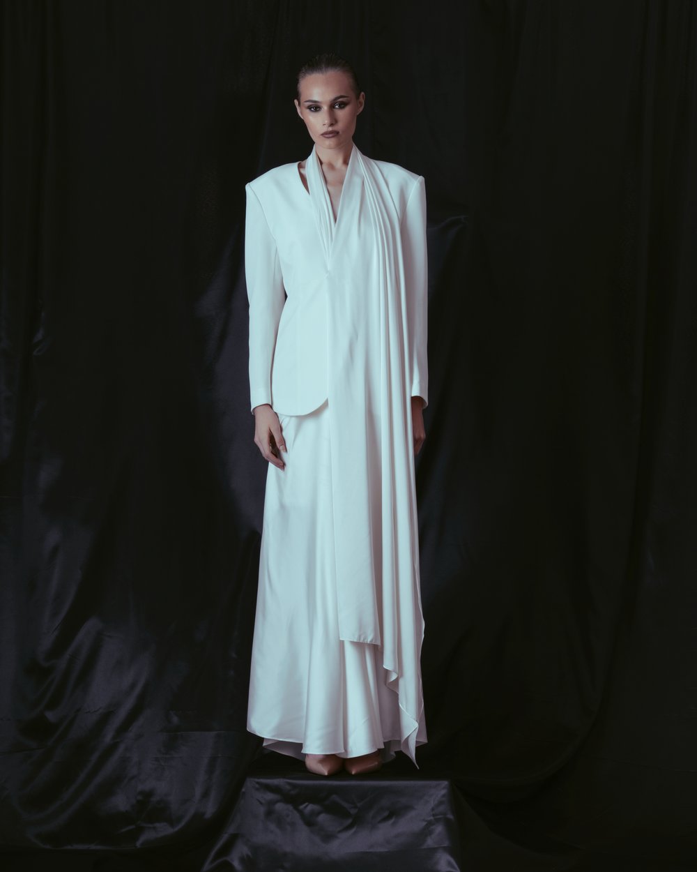 Aesthetics and elegance gradually and subtly disappeared from life and dress. The world lacks beauty, grace and refined sex appeal.“ It’s time to start doing something about it, preferably in a practical and constructive way – by creating,“ says Lukáš Macháček about the motivation and inspiration behind his new creative venture. The line-up, composed exclusively of garments falling under the category of „evening & occasionwear“, is the author’s professional work and, equally, a personal manifesto against grey and boredom, laziness and the absence of good taste and manners. It has become the norm that people today don’t take much trouble to dress up. Dress codes prescribed by the organisers of various events are not only not respected, but not even known. Social dressing has been limited to blazers and minidresses at most, with evening toilets and tuxedos missing from wardrobes. And even the ones that are there are mostly devoid of any idea, elaborate tailoring and quality workmanship – hence, they are limited to ordinary ordinary textile production.